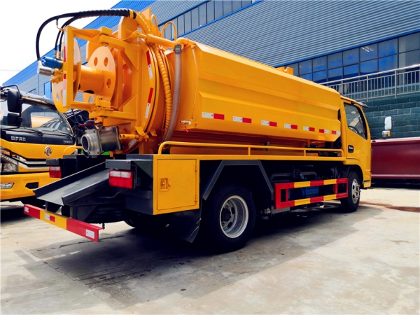 吸污部分:3.8方污罐,罐體5mmQ235優質碳鋼,配淄博SK-9水循環泵(北方地區可選裝真空油泵),8米吸污管一根,進氣管加過濾網,防溢閥加高,后蓋卡扣鎖緊,前視污亮管,后尾部加裝1個力拓牌**mm、150mm的球閥均帶進出口,罐體帶舉升功能,后門帶液壓開啟。