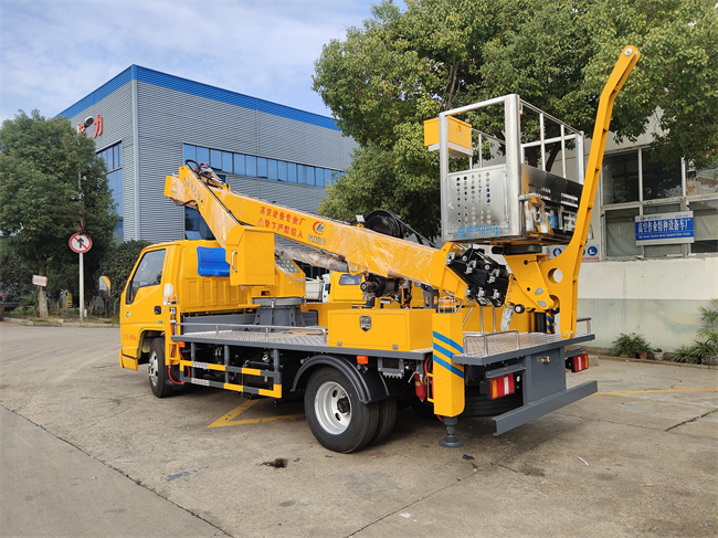 (底盤采用江鈴原廠116馬力發動機,國六排放標準,上裝**作業高度23米,加裝液壓卷盤可吊500KG,也可以替換電動卷揚機,工作框加裝45公分寬度折疊版,方便作業工具擺放,小臂頭加裝小飛臂,增加吊裝高度以及跨度。小飛臂以及液壓卷揚機均可隨時安裝,方便拆卸。大臂油漆升級烤漆,五年不褪色。)